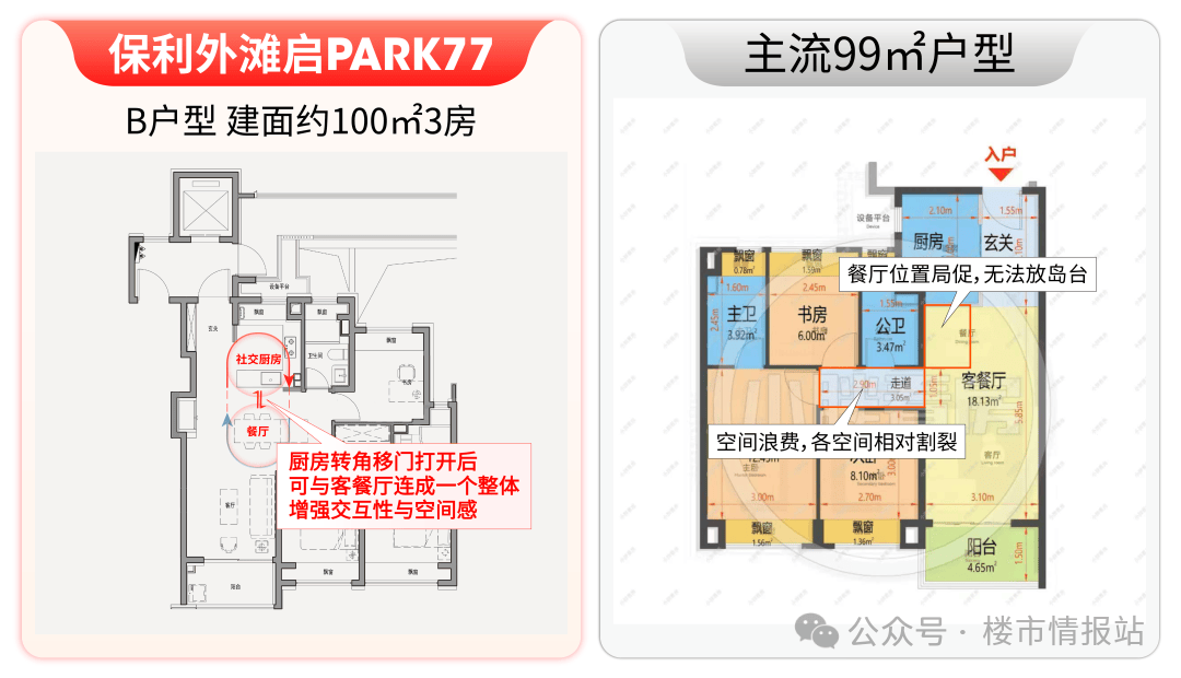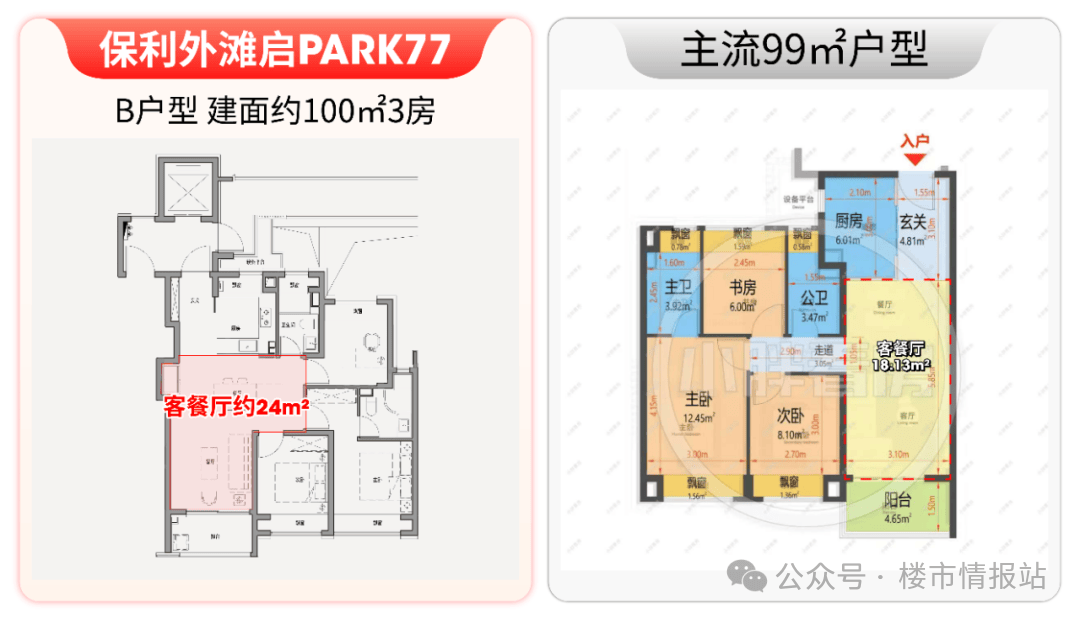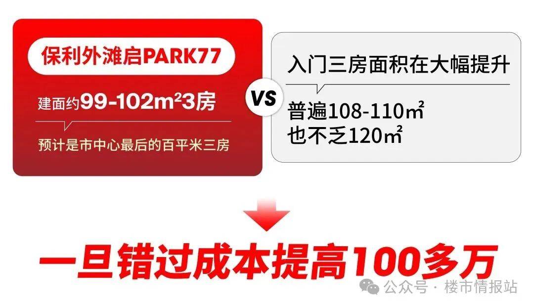 无论中间套高性价比、E户型通透感,还是边套景观与实得率,这批百平米3房都堪称“错过难再得”的优选。在市中心三房面积持续扩容的当下,抢占保利外滩启PARK77,就是抢占成本优势与居住品质的双重先机!