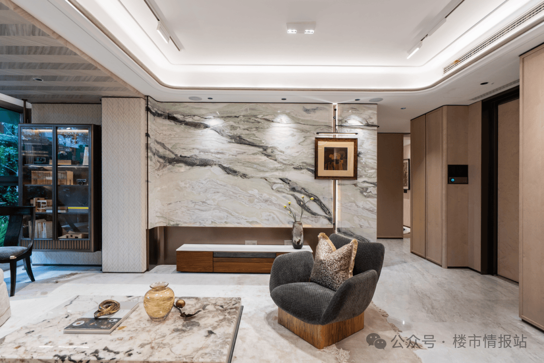 电视背景墙颜值跃升,无论大小户型均较此前更显高级;吊顶也采用定制设计,告别单调平层。1✅✅保利外滩启PARK77售楼处电线户型谍照