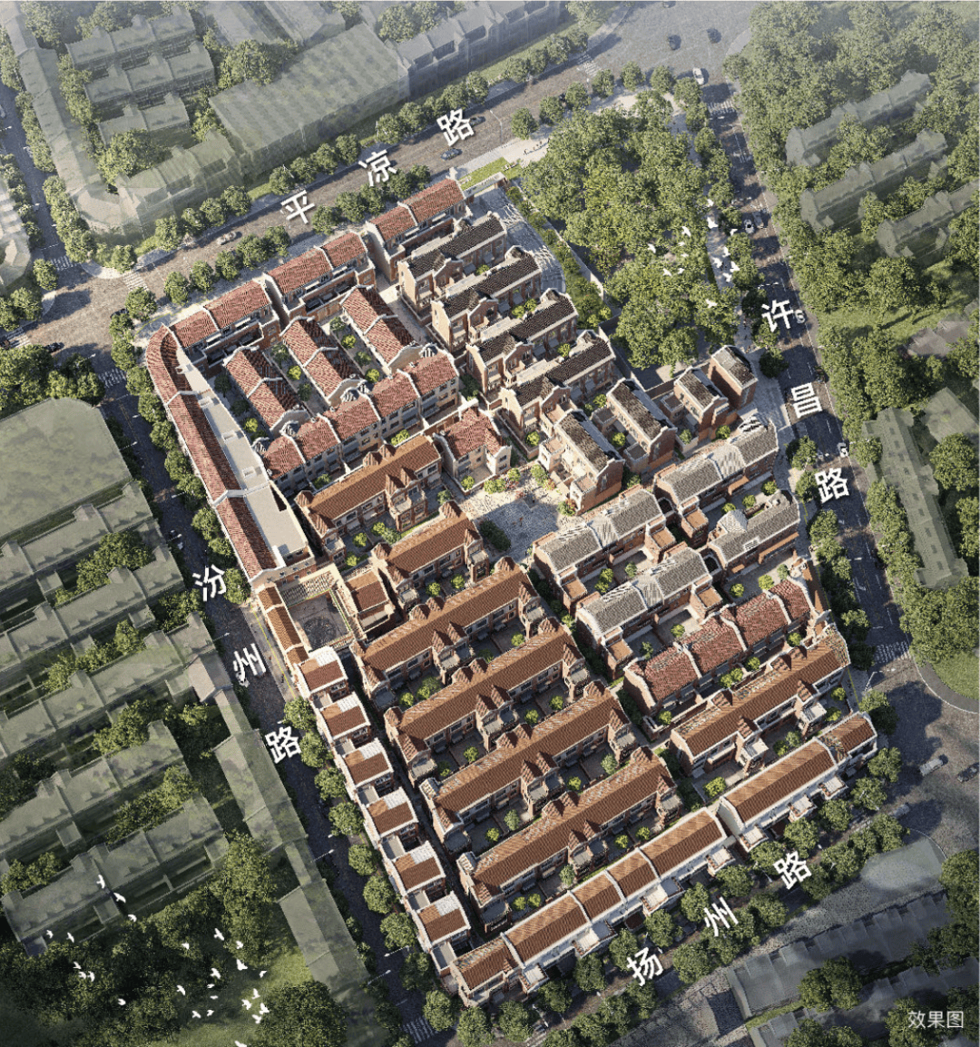 翠湖滨江溯源“花园里弄”的建筑形态,尊重街巷里弄的空间秩序,打造一中心、四节点的“四海一心”的里弄布局。