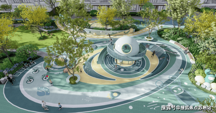 以江南人文精神为源点,打造两轴一环五进空间,江南礼序归家轴串联启迎盛礼、筑阙会友、归家华堂等5重礼制,尊崇归家;健康运动轴以24小时跑道为社区活力生活环,串联儿童乐园、长者康养、疗愈花园等10大生活场景,营造全龄全时的江南诗意生活。