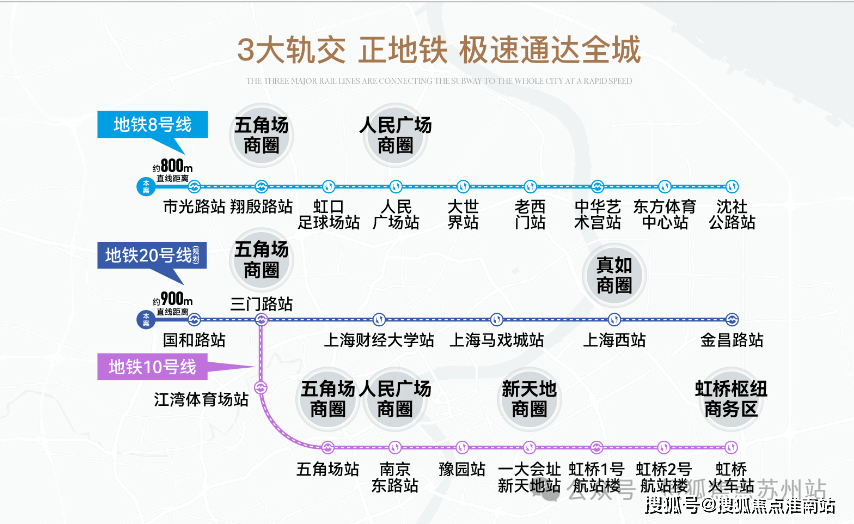 交通立体,三横二纵三轨交立体交通网。直线号线号线号线三门路站,串联起五角场、虹口足球场、静安、人民广场、新天地、淮海路等核心商圈。