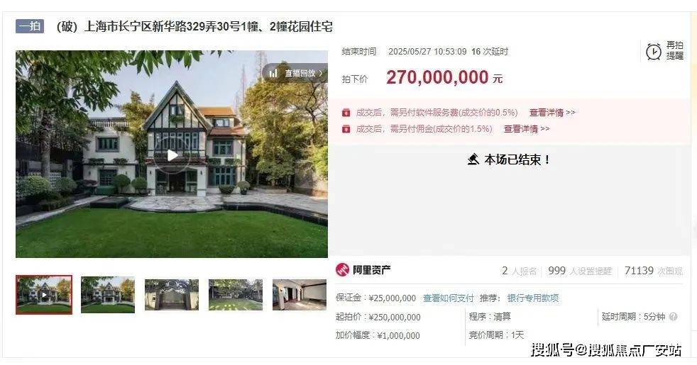 今年5月27日,新华路一幢535㎡花园别墅法拍,以2.7亿元成交,成交单价达到50.46万元/㎡。