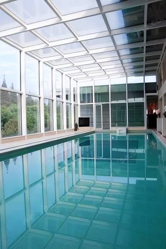 别墅内还有一个当时号称能申报吉尼斯世界纪录的“最妖”设计——18米长的游泳池造在2楼,池底用的是一片47厘米厚的大玻璃,站在一楼大厅的走道上,抬头便是流光水影。