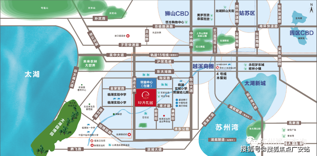 三横(吴中大道、东太湖路、木东公路)两纵(东山大道、浦庄大道)立体式交通网,更有苏州湾1号、2号隧道加速建设中。中环西线南延建成以后,可通过大中环快速无界畅达苏州全城。