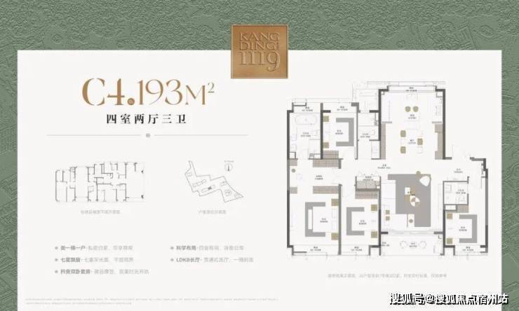约17.2米环绕观景台:约238㎡户型的客餐厅,位于户型的顶端。自东向南环绕270度的观景台长达约17.2米,在这样的客厅,甚至可以踱步欣赏窗外的满眼梧桐。独立会客厅,可以做小茶室或棋牌,更深一步的隐私感,为专享客群定制。