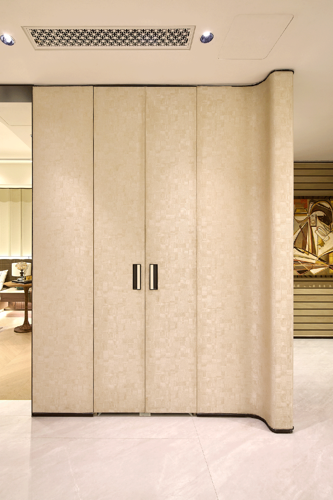 在保利天奕的背景墙岩板定制之上,保利珺园实现定制化的全面升级,打破“千房一面”的桎梏,构建三大定制体系,将定制化贯穿入户、玄关、客厅空间,兼顾个性化需求与整体美学统一,彰显高阶人群的专属品味。