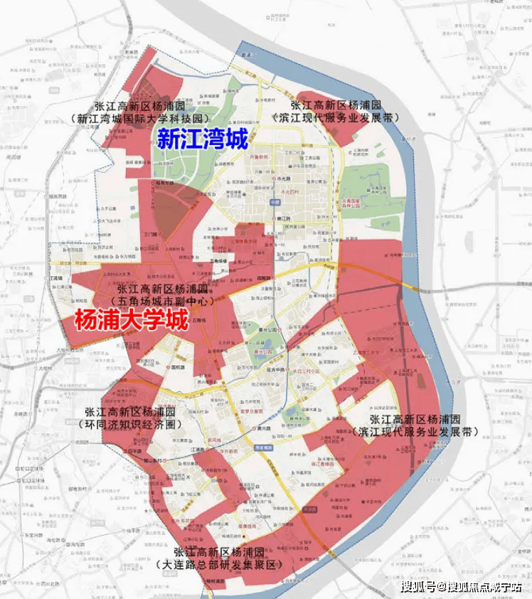 如大弓一般伸展的杨浦区,正在推动落实“三区联动”,也就是创新空间、产业空间、生活空间融合。作为杨浦区的核心发展引擎——江湾五角场的辐射生活带,新江湾城顺其自然坐享周边产业区、校区发展所带来的溢出机遇。中环北扩