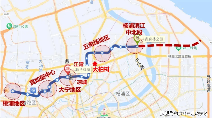 “北上海副中心联络线个站点。它不仅串联起了真如、五角场两大主城副中心,并且将桃浦智创城、大宁商圈、新江湾、曲阳(大柏树)、杨浦滨江中北段和浦东外高桥一线连接。这条新地铁将为新江湾城的东西两翼点开通勤出行新地图。