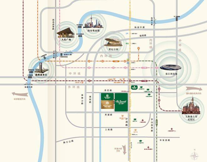 绿宝园位处康桥别墅区核心位置,距中环线号线康桥站。驾车可快速直达前滩、陆家嘴、张江,与迪士尼、外高桥、临港自贸区等浦东主要CBD。