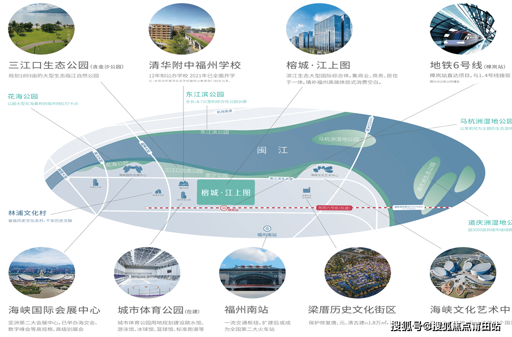地铁6号线樟岚站直达项目; 二环路、三环路、南江滨东大道 · 三江口大桥、道庆洲大桥、魁浦大桥、鼓山大桥快速串联福州