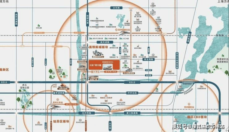 高铁枢纽:苏州北站(2.1公里)已接入京沪高铁、通苏嘉甬高铁(在建),未来4条高铁线交汇,直达上海、南京、杭州等核心城市